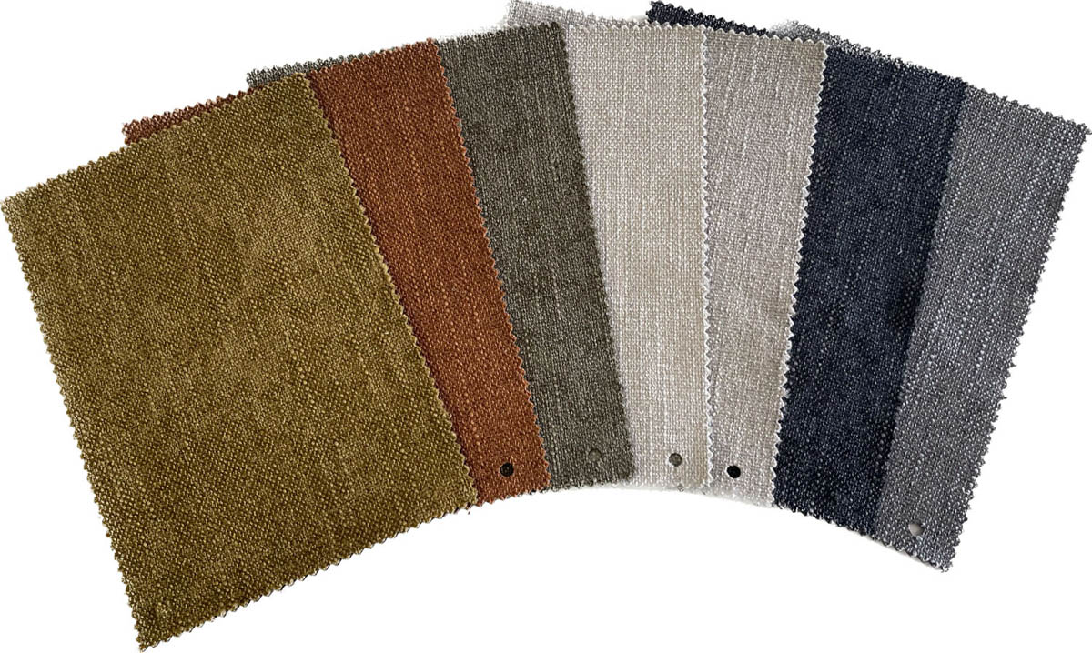 Hellbeige, hellgrau, senf, sandstone, olive, grau und schwarz.